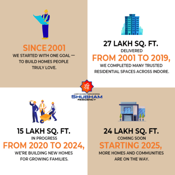For over 25 years, Shubham Group has shaped Indore’s skyline with a vision rooted in trust, innovation, and excellence We are committed to creating spaces where people live, grow, and thrive — from iconic commercial hubs to vibrant residential communities.